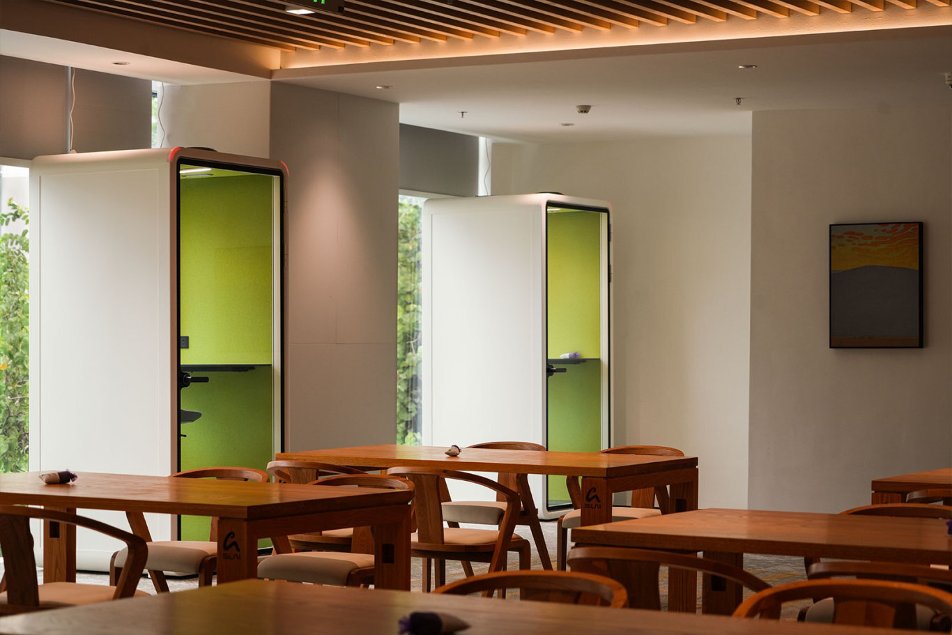 छात्रों की ज़रूरतों के अनुरूप, यह ऑफिस पॉड्स विचारशील डिज़ाइन विवरण पेश करता है। आंतरिक स्थान विशाल और आरामदायक है, जो एक डेस्क, कुर्सी और अध्ययन सामग्री को समायोजित करने में सक्षम है, जो लंबे अध्ययन सत्र के दौरान भी थकान मुक्त अनुभव सुनिश्चित करता है। यह समायोज्य रंग तापमान और चमक के साथ आंखों की सुरक्षा करने वाली रोशनी से सुसज्जित है, जो नरम, गैर-चमकदार रोशनी प्रदान करती है जो छात्रों की आंखों की रोशनी का ख्याल रखती है। एक कम शोर वाला वेंटिलेशन सिस्टम सक्रिय रूप से घर के अंदर की हवा को बदल देता है, घुटन को रोकता है और निरंतर आराम सुनिश्चित करता है। इसके अलावा, इंस्टॉलेशन के दौरान पॉड को काटने, ड्रिलिंग या गोंद की आवश्यकता नहीं होती है - यह असेंबली के तुरंत बाद उपयोग के लिए तैयार है। आकार में छोटा, इसे लचीले ढंग से परिसर के पुस्तकालयों, अध्ययन लाउंज और अन्य क्षेत्रों में रखा जा सकता है।
